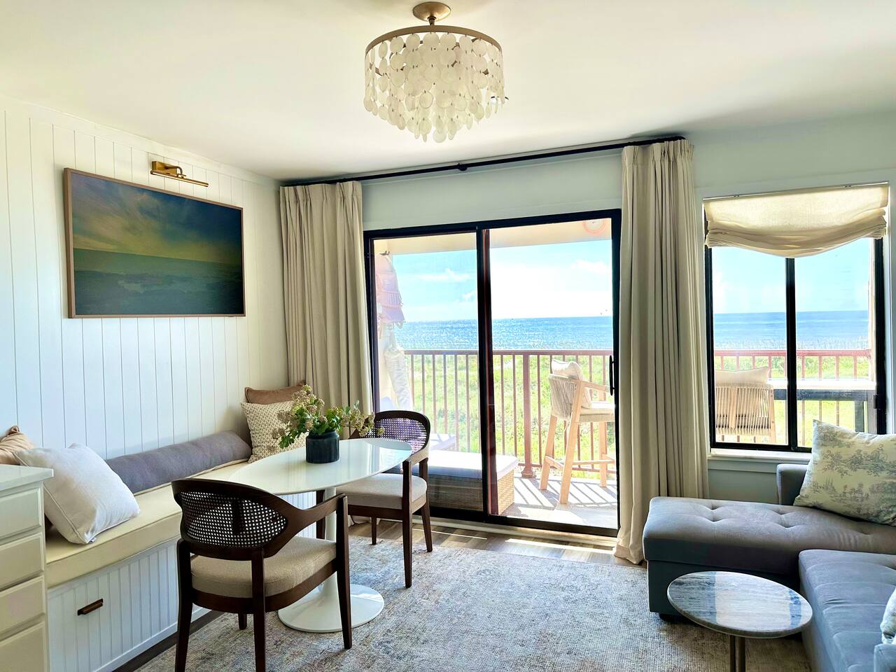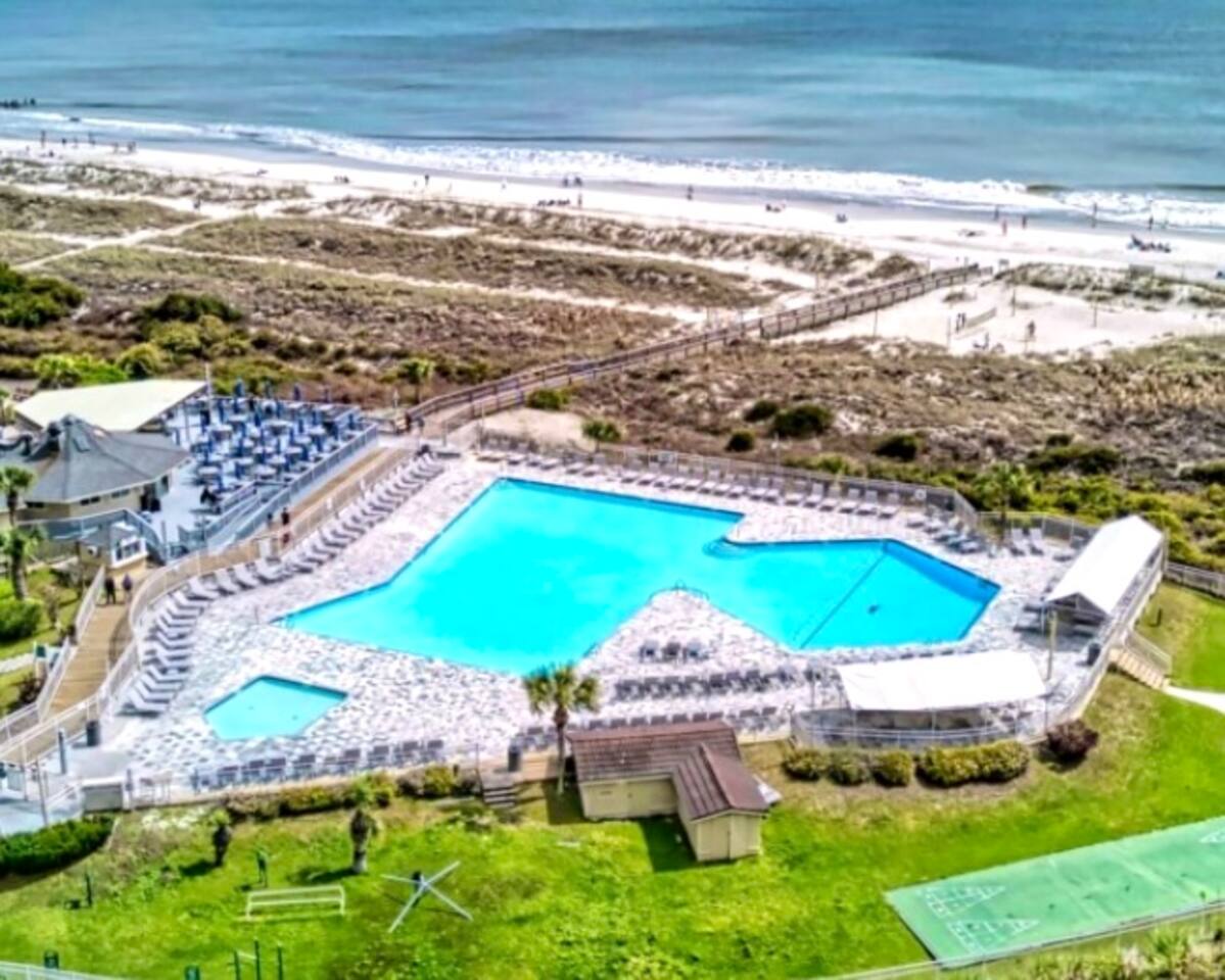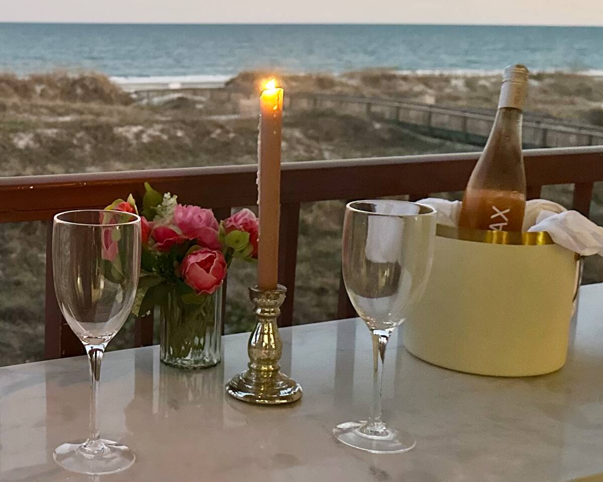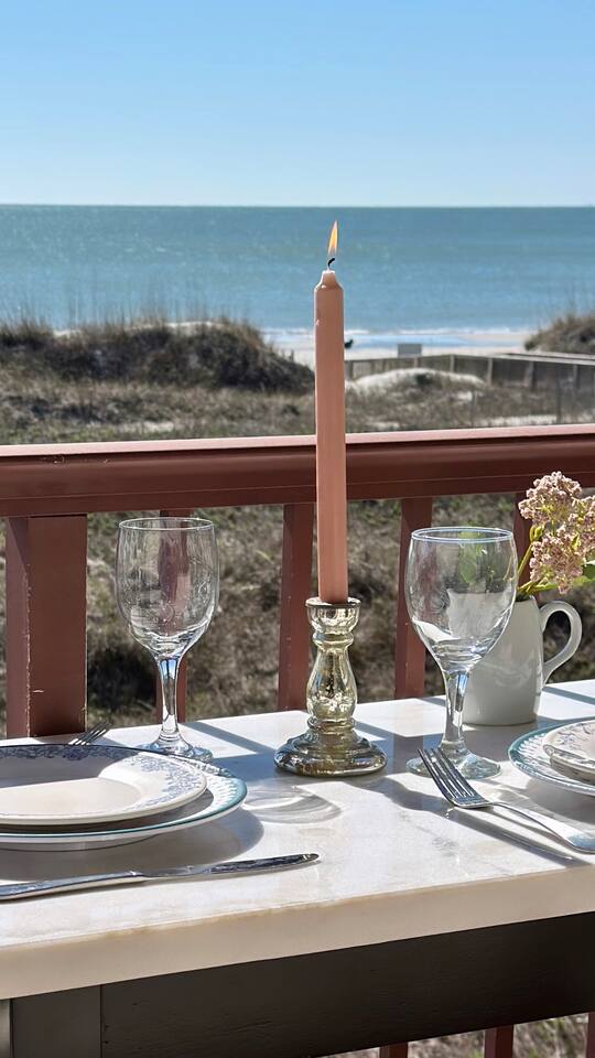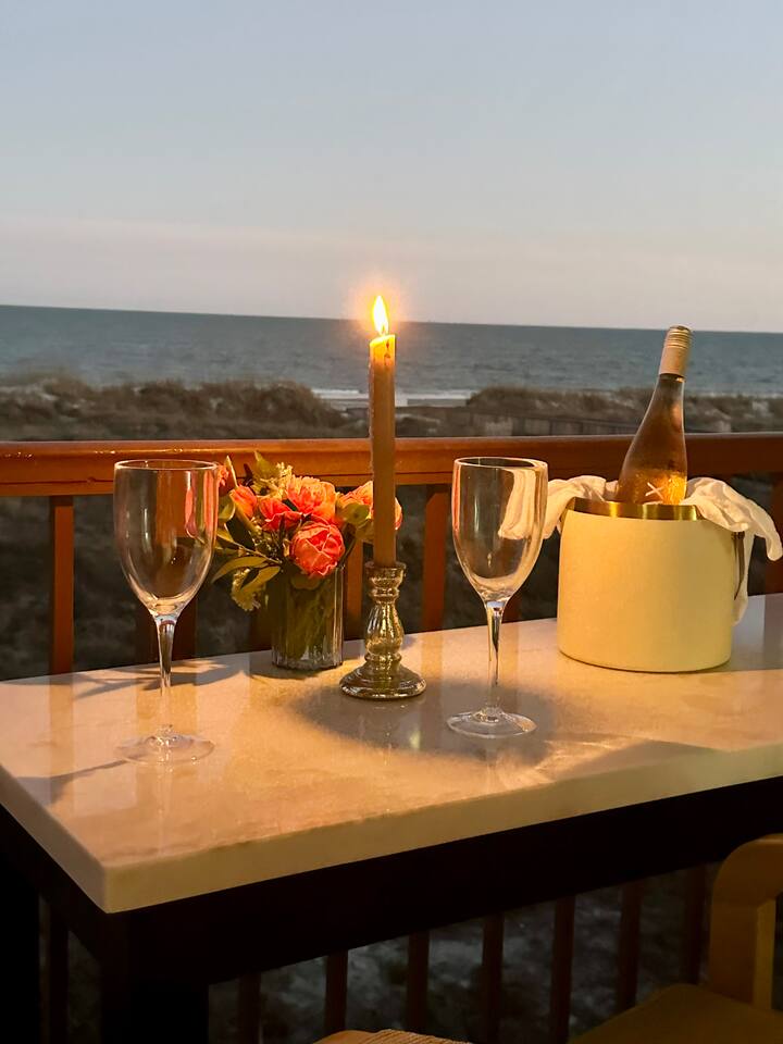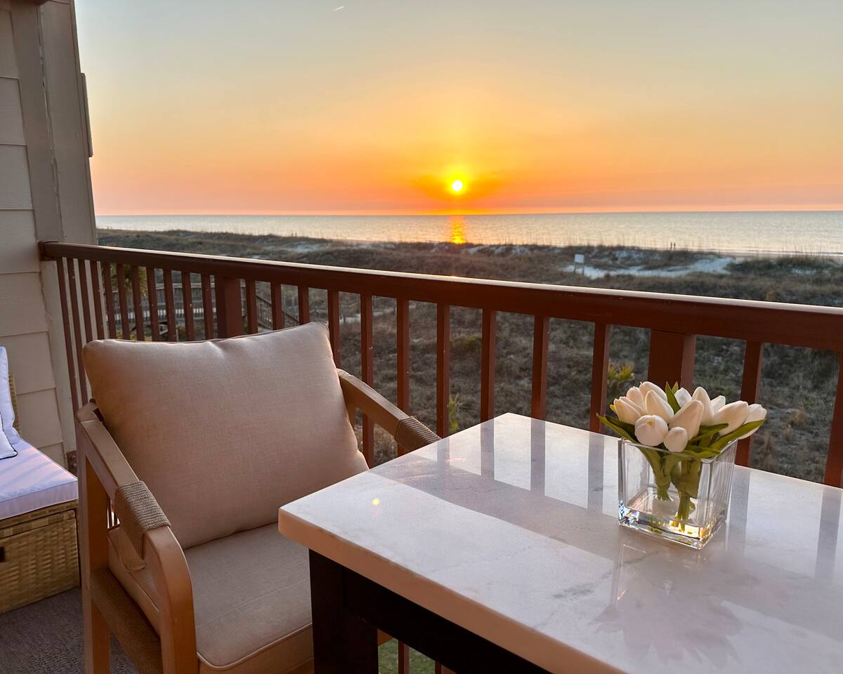 Sunrise Strolls, Champagne on the Balcony, and late-night talks under Starry Skiesâitâs all waiting for you at âSalt Air.â Enjoy a thoughtfully designed coastal retreatâelegant, cozy, and made for memories. From Honeymoons to Babymoons and Everything in between, we're honored that so many of our Guests have chosen Salt Air to be a part of their special memories! Be Front Row to panoramic and unobstructed âPicture-Perfectâ Oceanfront views the minute you step in the Door!!⌠Sunrises on Private Balcony, Living Room and from Dining Banquet! Located on the 2nd floor of Admiralâs Row, our Villa provides the ultimate vantage point for enjoying breathtaking views of the ocean and the beautiful dunes. This floor is particularly great because it offers an unobstructed perspective, without the distraction of umbrellas and tents on the beach below! âď¸KING BED coming January 2026!! All 2026 Reservations will have a King Bed & 55â Smart TV Airbnb has awarded us with: đGuest Favorite đSUPERHOST âď¸Newly Remodeled and Coastal curated! âď¸Brand New HVAC (May 2025) âď¸ Private Bedroom Suite with Queen Bed âď¸Couch that converts to Queen Bed âď¸ Modern & Luxe Bathroom âď¸ Full Kitchen w/ Stainless Steel Appliances âď¸ Private OCEANFRONT Balcony with Cozy Outdoor Seating (2 Cushioned Chaise Loungers) & Dining Area (Carrara Marble Table with 2 Cushioned Chairs!) âď¸ 2 Premium Beach Chairs & 7â Umbrella âď¸ (1) 55â SAMSUNG FRAME Smart TV+ High-speed Wi-Fi âď¸ Free Parking âď¸ 24 HR Gated Resort with Security âď¸ Direct access to Beach..50 steps to Sand âď¸ 2 Pools (NOT HEATED) (Largest Pool in HHI & 2nd Secluded Pool is located in Admiralâs Row) âď¸ Tiki Bar - Live Music in Summer! âď¸ 3 Restaurants âď¸ Free Play - Tennis & Pickle Ball Courts âď¸ Fitness Center âď¸ Outdoor Grills & Picnic Area âď¸ Billiards Table âď¸ Ice-Cream Hut âď¸ Bike Rentals âď¸ Childrenâs Playground âď¸ Coin-Operated laundry down the Hall Enjoy upscale amenities in this romantic condo, including Oceanfront views and high-end furnishings. --- **No Smoking Policy** Smoking of any kind (including cigarettes, cigars, e-cigarettes, or marijuana) is strictly prohibited inside the property. A $500 fine will be charged for any violation of this policy, in addition to any cleaning fees required to remove odors and residue. Please respect this policy to ensure a pleasant environment for all guests. Bedroom- âď¸ Queen bed âď¸ 12â luxury memory foam mattress âď¸ 6-drawer dresser & double closet Bathroom- âď¸ Walk-in shower âď¸ Lots of storage âď¸ Teak shower bench Living Room- âď¸ Lounging couch with chaise âď¸ 55â Samsung Smart TV âď¸ Barrel chair with ottoman Gourmet Kitchen- âď¸ Shaker cabinets âď¸ Built-in banquette âď¸ Oval tulip table âď¸ Stainless steel appliances âď¸ Dishes, glasses, pots & pans, bakeware & every chefâs supply! Coffee Bar & Shake Bar- âď¸ Keurig Gold coffee maker âď¸ Coffee maker âď¸ French drip âď¸ Tea kettle âď¸ Shake maker (Bring your favorite pods, coffee, and teas!) Balcony- âď¸ 2 cushioned chaises âď¸ Marble dining table âď¸ 2 coastal counter stools Also, Iron & board, Clothes Steamer, Hair Dryer & Air Purifier âď¸âď¸âď¸âď¸âď¸ Guest Reviews! âThe property was beautiful and well located close to shops, restaurants and activities. The condo specific location on the property couldn't have been better. Direct facing ocean front where you can watch the sunrise, enjoy people watching and beach viewing. The hosts were exceptional at communicating and answering questions quickly. I will be returning to this spot in the future and would recommend this to all my friends.â ~KATHLEEN It's a 10!!! What a privilege to stay at such a well thought out, perfectly appointed decor with great attention to the scale of the furniture for the square footage. There was not one thing that we wished was supplied. Ok, the view!! That sunrise got us out of bed and on the sand everyday!! Just stunning from the great balcony too!!! ~DEBBIE