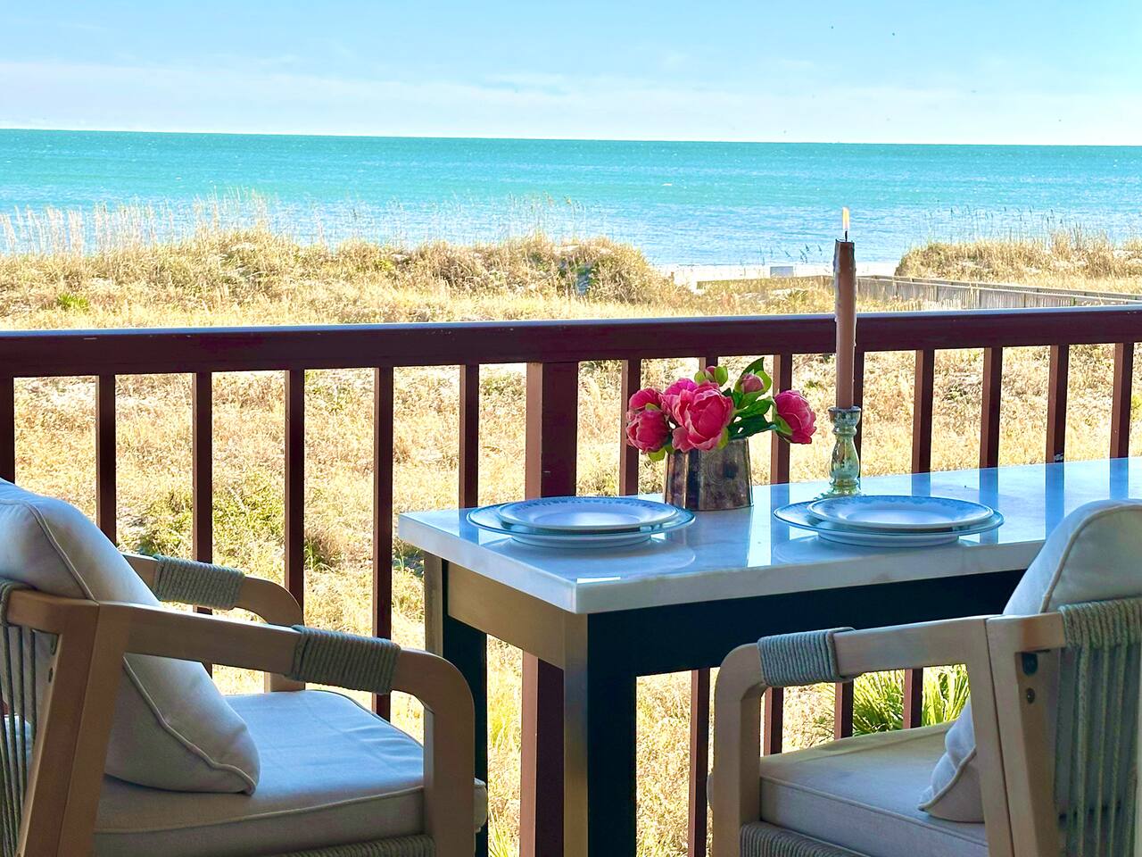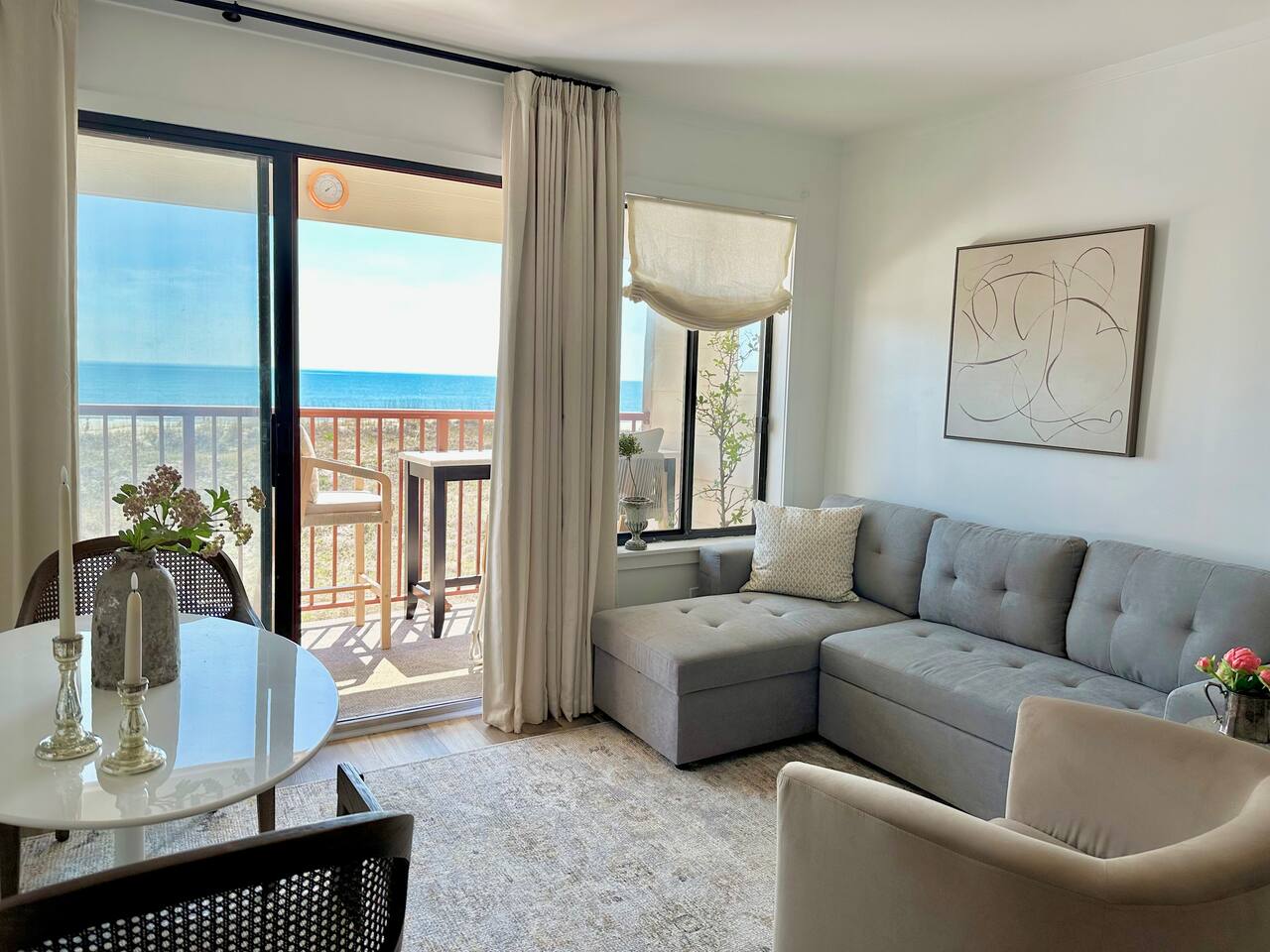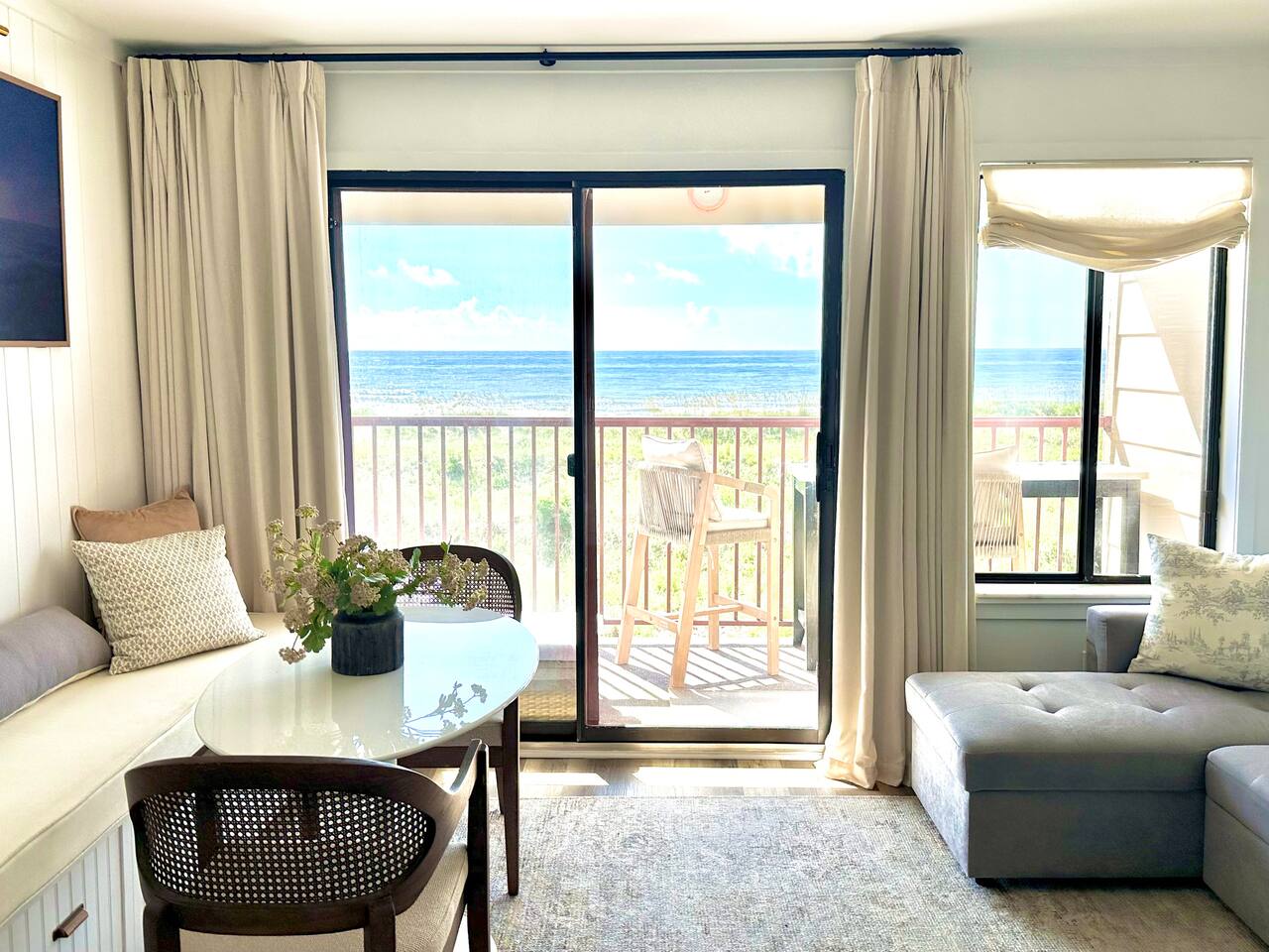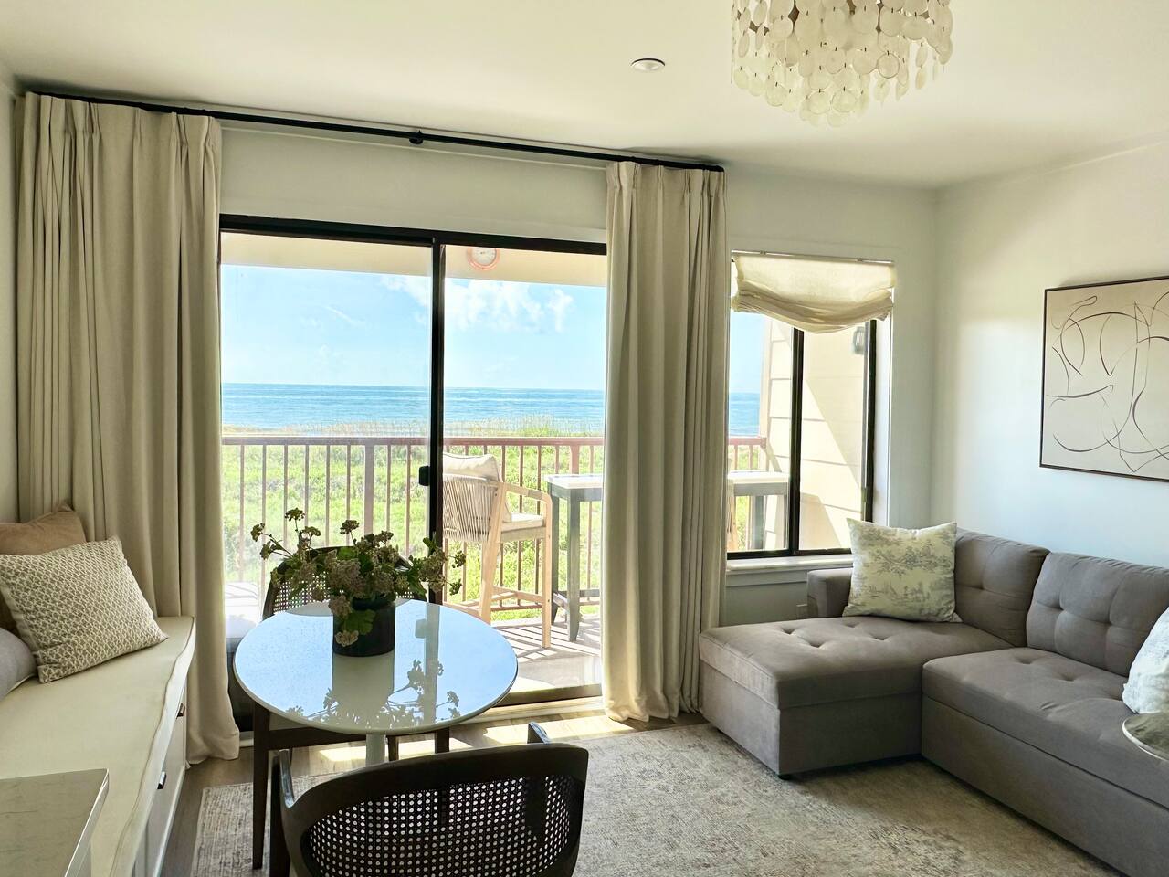 Sunrise Strolls, Champagne on the Balcony, and late-night talks under Starry Skiesâitâs all waiting for you at âSalt Air.â Enjoy a thoughtfully designed coastal retreatâelegant, cozy, and made for memories. From Honeymoons to Babymoons and Everything in between, we're honored that so many of our Guests have chosen Salt Air to be a part of their special memories! Be Front Row to panoramic and unobstructed âPicture-Perfectâ Oceanfront views the minute you step in the Door!!⌠Sunrises on Private Balcony, Living Room and from Dining Banquet! Located on the 2nd floor of Admiralâs Row, our Villa provides the ultimate vantage point for enjoying breathtaking views of the ocean and the beautiful dunes. This floor is particularly great because it offers an unobstructed perspective, without the distraction of umbrellas and tents on the beach below! âď¸KING BED coming January 2026!! All 2026 Reservations will have a King Bed & 55â Smart TV Airbnb has awarded us with: đGuest Favorite đSUPERHOST âď¸Newly Remodeled and Coastal curated! âď¸Brand New HVAC (May 2025) âď¸ Private Bedroom Suite with Queen Bed âď¸Couch that converts to Queen Bed âď¸ Modern & Luxe Bathroom âď¸ Full Kitchen w/ Stainless Steel Appliances âď¸ Private OCEANFRONT Balcony with Cozy Outdoor Seating (2 Cushioned Chaise Loungers) & Dining Area (Carrara Marble Table with 2 Cushioned Chairs!) âď¸ 2 Premium Beach Chairs & 7â Umbrella âď¸ (1) 55â SAMSUNG FRAME Smart TV+ High-speed Wi-Fi âď¸ Free Parking âď¸ 24 HR Gated Resort with Security âď¸ Direct access to Beach..50 steps to Sand âď¸ 2 Pools (NOT HEATED) (Largest Pool in HHI & 2nd Secluded Pool is located in Admiralâs Row) âď¸ Tiki Bar - Live Music in Summer! âď¸ 3 Restaurants âď¸ Free Play - Tennis & Pickle Ball Courts âď¸ Fitness Center âď¸ Outdoor Grills & Picnic Area âď¸ Billiards Table âď¸ Ice-Cream Hut âď¸ Bike Rentals âď¸ Childrenâs Playground âď¸ Coin-Operated laundry down the Hall Enjoy upscale amenities in this romantic condo, including Oceanfront views and high-end furnishings. --- **No Smoking Policy** Smoking of any kind (including cigarettes, cigars, e-cigarettes, or marijuana) is strictly prohibited inside the property. A $500 fine will be charged for any violation of this policy, in addition to any cleaning fees required to remove odors and residue. Please respect this policy to ensure a pleasant environment for all guests. Bedroom- âď¸ Queen bed âď¸ 12â luxury memory foam mattress âď¸ 6-drawer dresser & double closet Bathroom- âď¸ Walk-in shower âď¸ Lots of storage âď¸ Teak shower bench Living Room- âď¸ Lounging couch with chaise âď¸ 55â Samsung Smart TV âď¸ Barrel chair with ottoman Gourmet Kitchen- âď¸ Shaker cabinets âď¸ Built-in banquette âď¸ Oval tulip table âď¸ Stainless steel appliances âď¸ Dishes, glasses, pots & pans, bakeware & every chefâs supply! Coffee Bar & Shake Bar- âď¸ Keurig Gold coffee maker âď¸ Coffee maker âď¸ French drip âď¸ Tea kettle âď¸ Shake maker (Bring your favorite pods, coffee, and teas!) Balcony- âď¸ 2 cushioned chaises âď¸ Marble dining table âď¸ 2 coastal counter stools Also, Iron & board, Clothes Steamer, Hair Dryer & Air Purifier âď¸âď¸âď¸âď¸âď¸ Guest Reviews! âThe property was beautiful and well located close to shops, restaurants and activities. The condo specific location on the property couldn't have been better. Direct facing ocean front where you can watch the sunrise, enjoy people watching and beach viewing. The hosts were exceptional at communicating and answering questions quickly. I will be returning to this spot in the future and would recommend this to all my friends.â ~KATHLEEN It's a 10!!! What a privilege to stay at such a well thought out, perfectly appointed decor with great attention to the scale of the furniture for the square footage. There was not one thing that we wished was supplied. Ok, the view!! That sunrise got us out of bed and on the sand everyday!! Just stunning from the great balcony too!!! ~DEBBIE