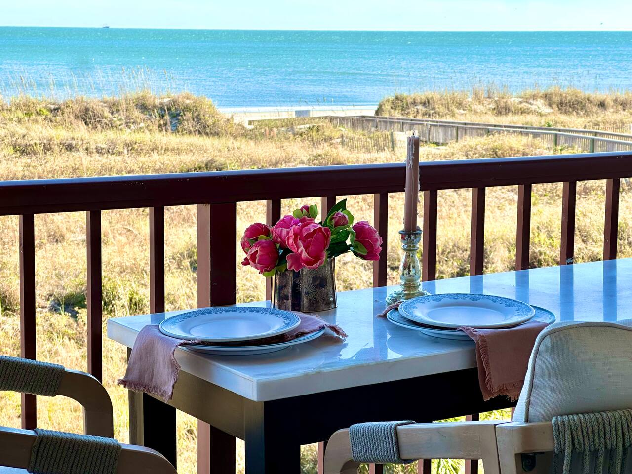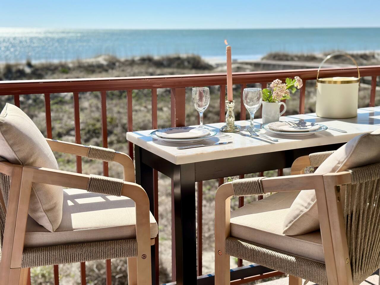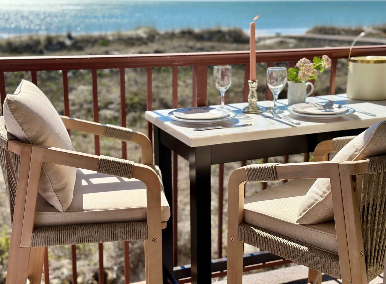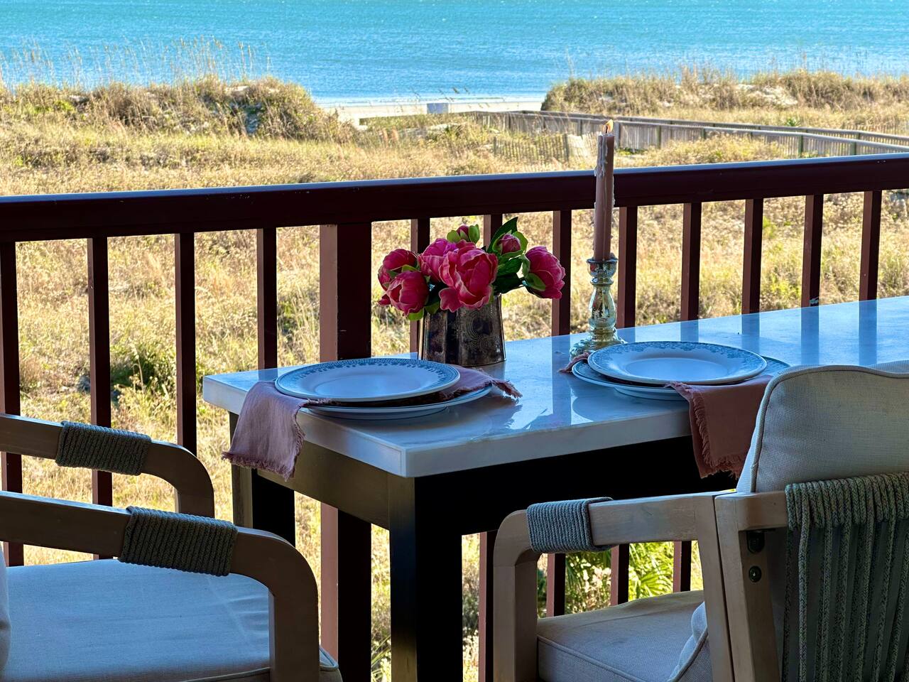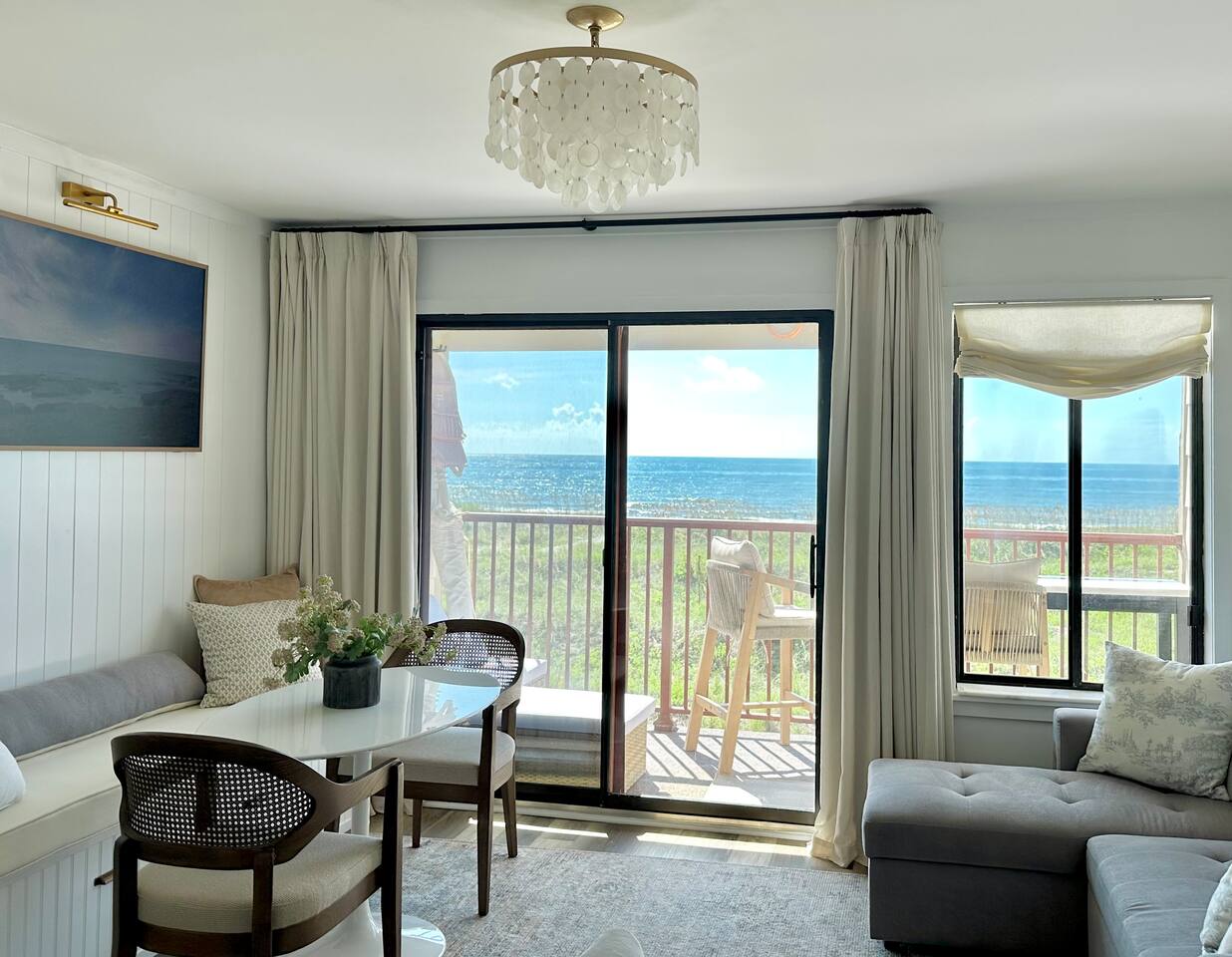 Sunrise Strolls, Champagne on the Balcony, and late-night talks under Starry Skiesâitâs all waiting for you at âSalt Air.â Enjoy a thoughtfully designed coastal retreatâelegant, cozy, and made for memories. From Honeymoons to Babymoons and Everything in between, we're honored that so many of our Guests have chosen Salt Air to be a part of their special memories! Be Front Row to panoramic and unobstructed âPicture-Perfectâ Oceanfront views the minute you step in the Door!!⌠Sunrises on Private Balcony, Living Room and from Dining Banquet! Located on the 2nd floor of Admiralâs Row, our Villa provides the ultimate vantage point for enjoying breathtaking views of the ocean and the beautiful dunes. This floor is particularly great because it offers an unobstructed perspective, without the distraction of umbrellas and tents on the beach below! âď¸KING BED coming January 2026!! All 2026 Reservations will have a King Bed & 55â Smart TV Airbnb has awarded us with: đGuest Favorite đSUPERHOST âď¸Newly Remodeled and Coastal curated! âď¸Brand New HVAC (May 2025) âď¸ Private Bedroom Suite with Queen Bed âď¸Couch that converts to Queen Bed âď¸ Modern & Luxe Bathroom âď¸ Full Kitchen w/ Stainless Steel Appliances âď¸ Private OCEANFRONT Balcony with Cozy Outdoor Seating (2 Cushioned Chaise Loungers) & Dining Area (Carrara Marble Table with 2 Cushioned Chairs!) âď¸ 2 Premium Beach Chairs & 7â Umbrella âď¸ (1) 55â SAMSUNG FRAME Smart TV+ High-speed Wi-Fi âď¸ Free Parking âď¸ 24 HR Gated Resort with Security âď¸ Direct access to Beach..50 steps to Sand âď¸ 2 Pools (NOT HEATED) (Largest Pool in HHI & 2nd Secluded Pool is located in Admiralâs Row) âď¸ Tiki Bar - Live Music in Summer! âď¸ 3 Restaurants âď¸ Free Play - Tennis & Pickle Ball Courts âď¸ Fitness Center âď¸ Outdoor Grills & Picnic Area âď¸ Billiards Table âď¸ Ice-Cream Hut âď¸ Bike Rentals âď¸ Childrenâs Playground âď¸ Coin-Operated laundry down the Hall Enjoy upscale amenities in this romantic condo, including Oceanfront views and high-end furnishings. --- **No Smoking Policy** Smoking of any kind (including cigarettes, cigars, e-cigarettes, or marijuana) is strictly prohibited inside the property. A $500 fine will be charged for any violation of this policy, in addition to any cleaning fees required to remove odors and residue. Please respect this policy to ensure a pleasant environment for all guests. Bedroom- âď¸ Queen bed âď¸ 12â luxury memory foam mattress âď¸ 6-drawer dresser & double closet Bathroom- âď¸ Walk-in shower âď¸ Lots of storage âď¸ Teak shower bench Living Room- âď¸ Lounging couch with chaise âď¸ 55â Samsung Smart TV âď¸ Barrel chair with ottoman Gourmet Kitchen- âď¸ Shaker cabinets âď¸ Built-in banquette âď¸ Oval tulip table âď¸ Stainless steel appliances âď¸ Dishes, glasses, pots & pans, bakeware & every chefâs supply! Coffee Bar & Shake Bar- âď¸ Keurig Gold coffee maker âď¸ Coffee maker âď¸ French drip âď¸ Tea kettle âď¸ Shake maker (Bring your favorite pods, coffee, and teas!) Balcony- âď¸ 2 cushioned chaises âď¸ Marble dining table âď¸ 2 coastal counter stools Also, Iron & board, Clothes Steamer, Hair Dryer & Air Purifier âď¸âď¸âď¸âď¸âď¸ Guest Reviews! âThe property was beautiful and well located close to shops, restaurants and activities. The condo specific location on the property couldn't have been better. Direct facing ocean front where you can watch the sunrise, enjoy people watching and beach viewing. The hosts were exceptional at communicating and answering questions quickly. I will be returning to this spot in the future and would recommend this to all my friends.â ~KATHLEEN It's a 10!!! What a privilege to stay at such a well thought out, perfectly appointed decor with great attention to the scale of the furniture for the square footage. There was not one thing that we wished was supplied. Ok, the view!! That sunrise got us out of bed and on the sand everyday!! Just stunning from the great balcony too!!! ~DEBBIE