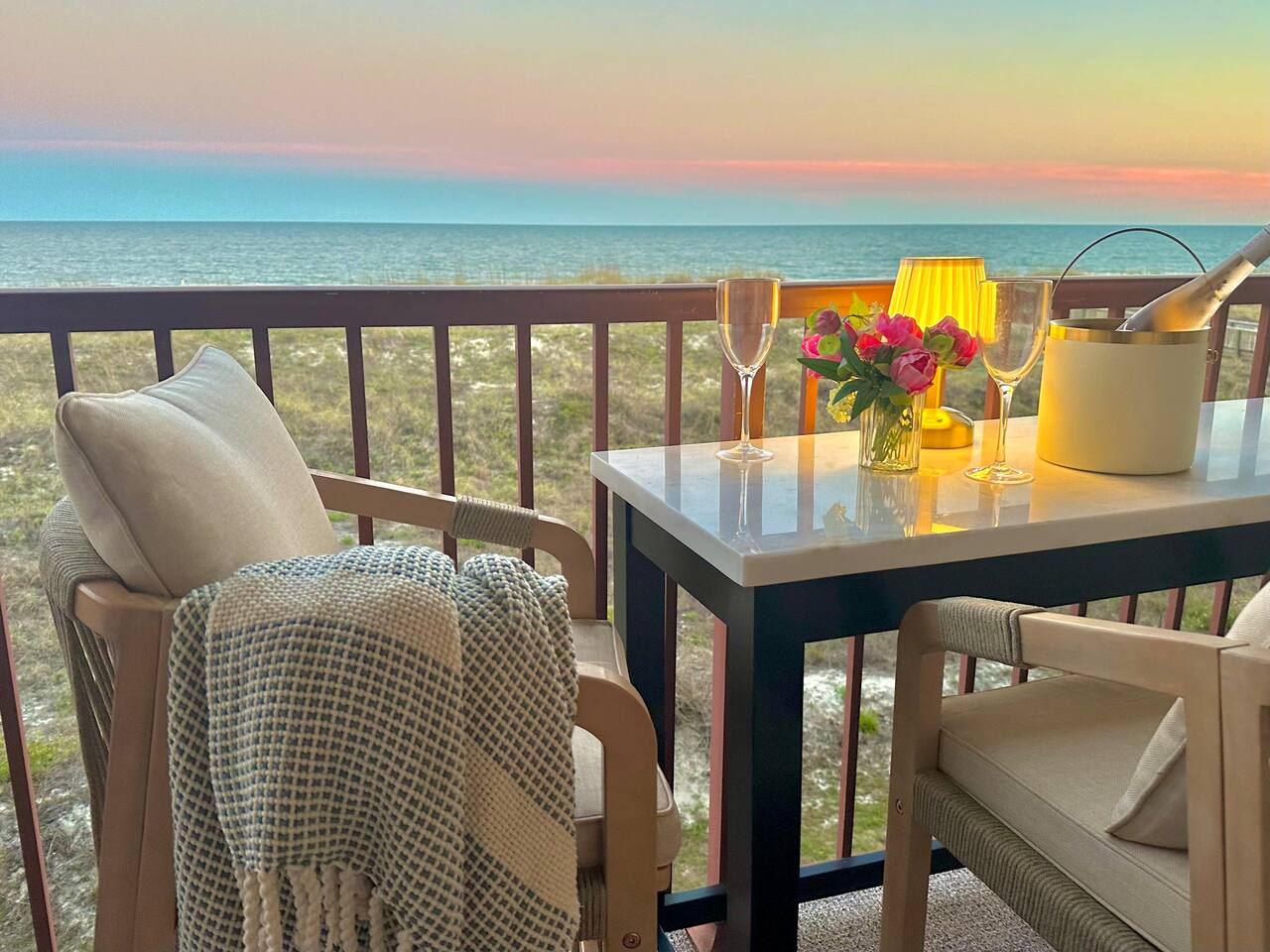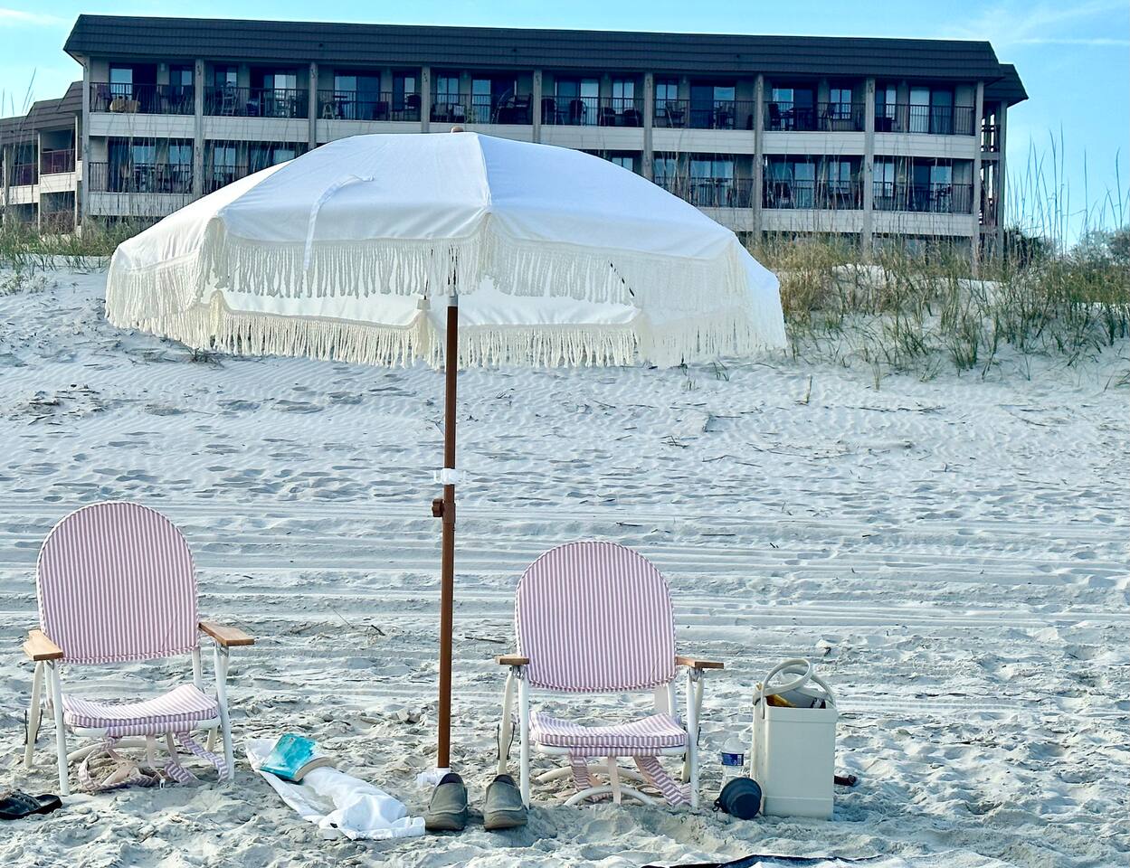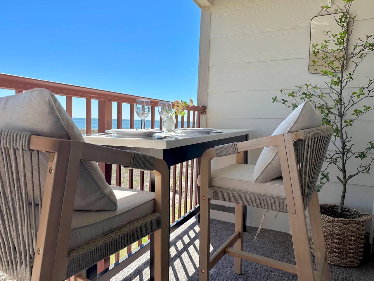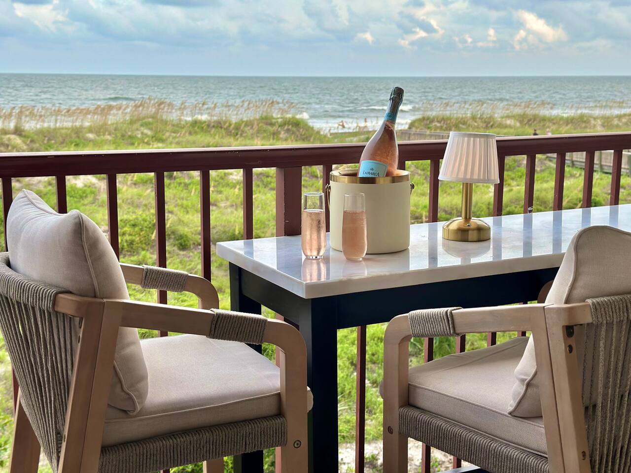Sunrise Strolls, Champagne on the Balcony, and late-night talks under Starry Skiesâitâs all waiting for you at âSalt Air.â Enjoy a thoughtfully designed coastal retreatâelegant, cozy, and made for memories. From Honeymoons to Babymoons and Everything in between, we're honored that so many of our Guests have chosen Salt Air to be a part of their special memories! Be Front Row to panoramic and unobstructed âPicture-Perfectâ Oceanfront views the minute you step in the Door!!⌠Sunrises on Private Balcony, Living Room and from Dining Banquet! Located on the 2nd floor of Admiralâs Row, our Villa provides the ultimate vantage point for enjoying breathtaking views of the ocean and the beautiful dunes. This floor is particularly great because it offers an unobstructed perspective, without the distraction of umbrellas and tents on the beach below! âď¸KING BED coming January 2026!! All 2026 Reservations will have a King Bed & 55â Smart TV Airbnb has awarded us with: đGuest Favorite đSUPERHOST âď¸Newly Remodeled and Coastal curated! âď¸Brand New HVAC (May 2025) âď¸ Private Bedroom Suite with Queen Bed âď¸Couch that converts to Queen Bed âď¸ Modern & Luxe Bathroom âď¸ Full Kitchen w/ Stainless Steel Appliances âď¸ Private OCEANFRONT Balcony with Cozy Outdoor Seating (2 Cushioned Chaise Loungers) & Dining Area (Carrara Marble Table with 2 Cushioned Chairs!) âď¸ 2 Premium Beach Chairs & 7â Umbrella âď¸ (1) 55â SAMSUNG FRAME Smart TV+ High-speed Wi-Fi âď¸ Free Parking âď¸ 24 HR Gated Resort with Security âď¸ Direct access to Beach..50 steps to Sand âď¸ 2 Pools (NOT HEATED) (Largest Pool in HHI & 2nd Secluded Pool is located in Admiralâs Row) âď¸ Tiki Bar - Live Music in Summer! âď¸ 3 Restaurants âď¸ Free Play - Tennis & Pickle Ball Courts âď¸ Fitness Center âď¸ Outdoor Grills & Picnic Area âď¸ Billiards Table âď¸ Ice-Cream Hut âď¸ Bike Rentals âď¸ Childrenâs Playground âď¸ Coin-Operated laundry down the Hall Enjoy upscale amenities in this romantic condo, including Oceanfront views and high-end furnishings. --- **No Smoking Policy** Smoking of any kind (including cigarettes, cigars, e-cigarettes, or marijuana) is strictly prohibited inside the property. A $500 fine will be charged for any violation of this policy, in addition to any cleaning fees required to remove odors and residue. Please respect this policy to ensure a pleasant environment for all guests. Bedroom- âď¸ Queen bed âď¸ 12â luxury memory foam mattress âď¸ 6-drawer dresser & double closet Bathroom- âď¸ Walk-in shower âď¸ Lots of storage âď¸ Teak shower bench Living Room- âď¸ Lounging couch with chaise âď¸ 55â Samsung Smart TV âď¸ Barrel chair with ottoman Gourmet Kitchen- âď¸ Shaker cabinets âď¸ Built-in banquette âď¸ Oval tulip table âď¸ Stainless steel appliances âď¸ Dishes, glasses, pots & pans, bakeware & every chefâs supply! Coffee Bar & Shake Bar- âď¸ Keurig Gold coffee maker âď¸ Coffee maker âď¸ French drip âď¸ Tea kettle âď¸ Shake maker (Bring your favorite pods, coffee, and teas!) Balcony- âď¸ 2 cushioned chaises âď¸ Marble dining table âď¸ 2 coastal counter stools Also, Iron & board, Clothes Steamer, Hair Dryer & Air Purifier âď¸âď¸âď¸âď¸âď¸ Guest Reviews! âThe property was beautiful and well located close to shops, restaurants and activities. The condo specific location on the property couldn't have been better. Direct facing ocean front where you can watch the sunrise, enjoy people watching and beach viewing. The hosts were exceptional at communicating and answering questions quickly. I will be returning to this spot in the future and would recommend this to all my friends.â ~KATHLEEN It's a 10!!! What a privilege to stay at such a well thought out, perfectly appointed decor with great attention to the scale of the furniture for the square footage. There was not one thing that we wished was supplied. Ok, the view!! That sunrise got us out of bed and on the sand everyday!! Just stunning from the great balcony too!!! ~DEBBIE